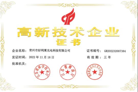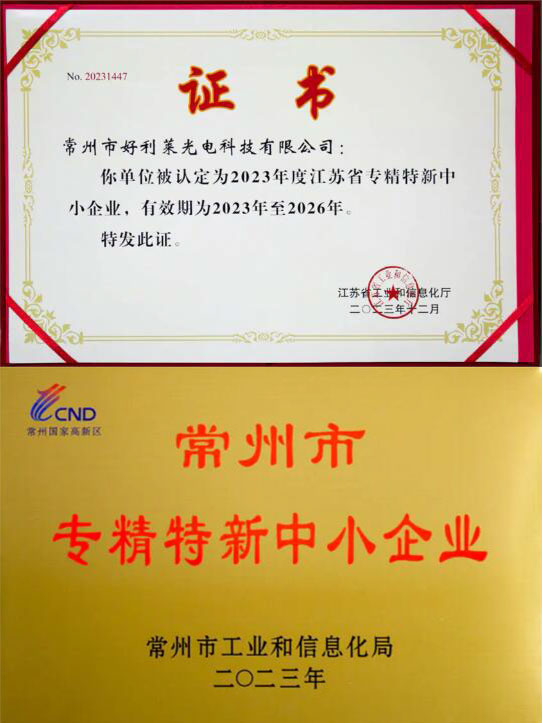 HLL은 Jiangsu Province에서 첨단 기술 기업으로 인정 받고 있으며 Jiangsu Province/Changzhou City의 전문적이고 정교하며 혁신적인 중소기업 (SME).